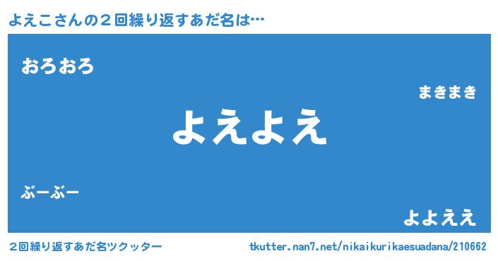 | 意味不明あだ名 | 『ペロリンよえこ』『よえこフォーエバー』 |
