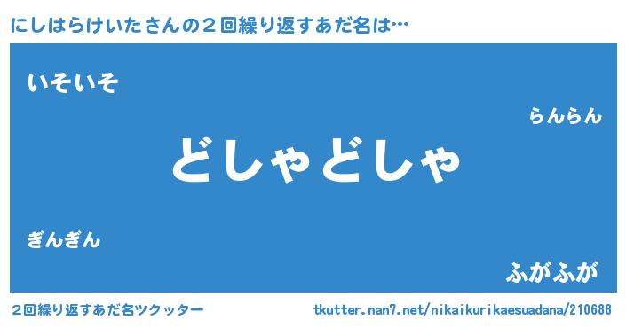 | 欧米人風あだ名 | 『にしはらけいた・ステッグマイヤー』 |