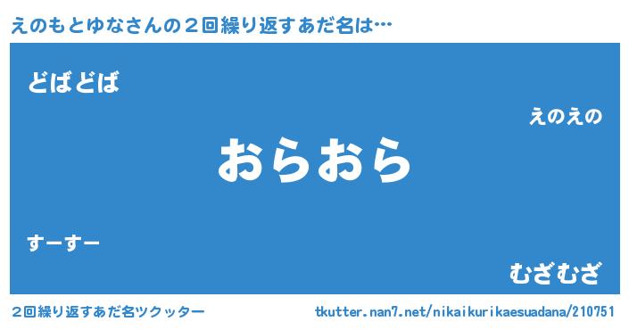 | 欧米人風あだ名 | 『ウサインえのもとゆな』 |