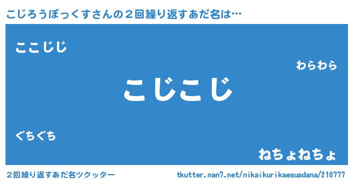 | 男性向けラノベタイトル風あだ名 | 『こじろうぼっくすの憂鬱』 |