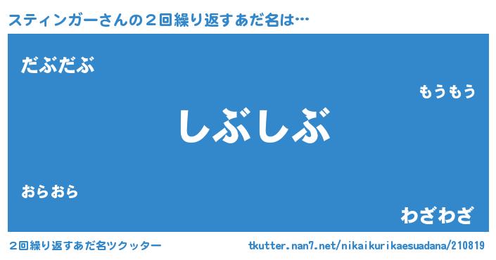 | 意味不明あだ名 | 『住所不定無職スティンガー(71歳)』 |