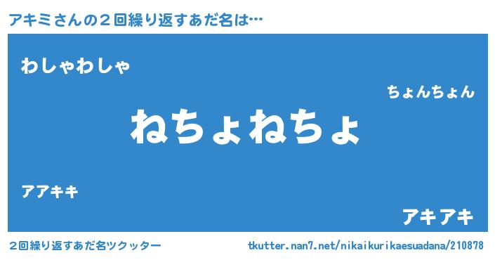 | 男性向けラノベタイトル風あだ名 | 『アキミの嫁は女の子じゃないと思った?』 |