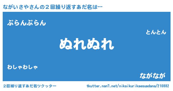 | 男性向けラノベタイトル風あだ名 | 『ながいさやの嫁は女の子じゃないと思った?』 |