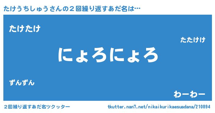 | 男性向けラノベタイトル風あだ名 | 『たけうちしゅうの嫁は女の子じゃないと思った?』 |