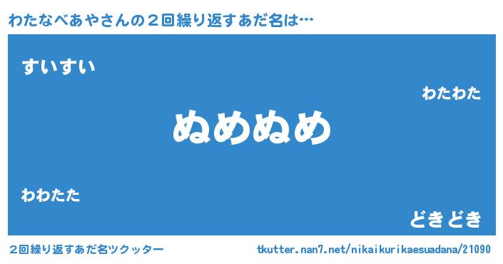 | 欧米人風あだ名 | 『ウサインわたなべあや』 |
