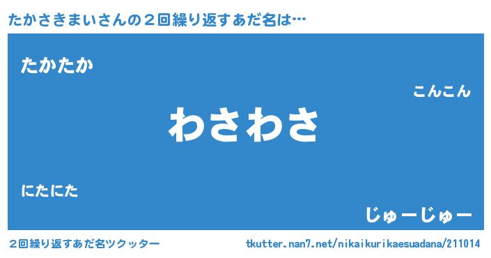 | 恥ずかしいあだ名 | 『プリティーたかさきまい』『たかちん』 |