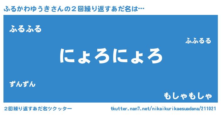 | 女子向けラノベタイトル風あだ名 | 『ふるかわゆうきの卵を拾いまして』 |