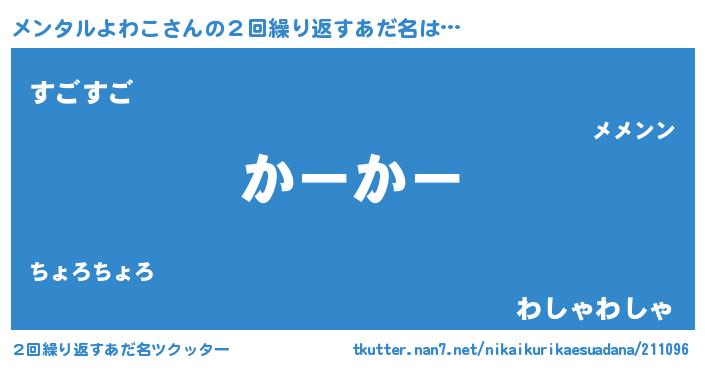 | 女子向けラノベタイトル風あだ名 | 『異世界で失敗しない100のメンタルよわこ』 |