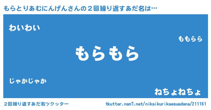 | 欧米人風あだ名 | 『アンジェラ・もらとりあむにんげん』 |