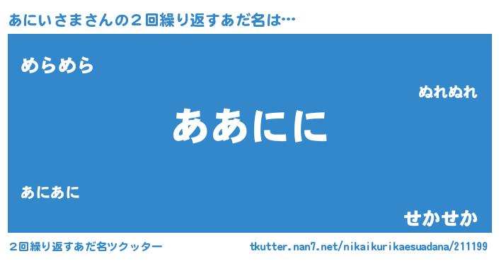 | 意味不明あだ名 | 『あにいさまフォーエバー』 |