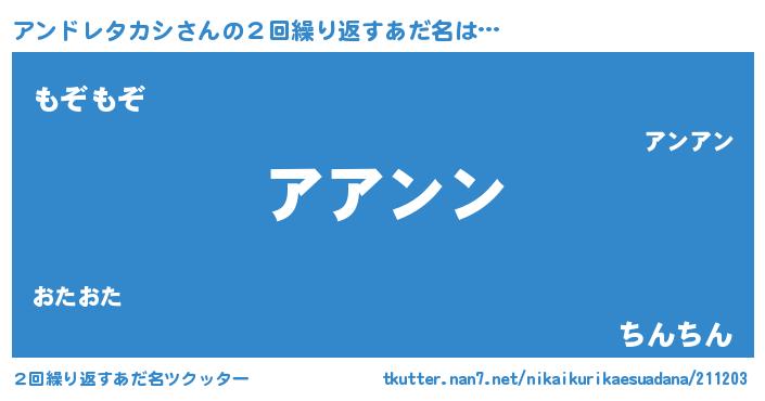 | 欧米人風あだ名 | 『アンドレタカシクリステル』 |