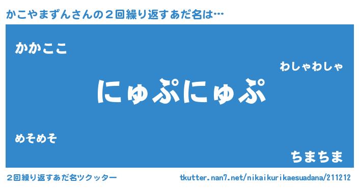 | 料理風あだ名 | 『ポテトとかこやまずんのキッシュ☆』 |