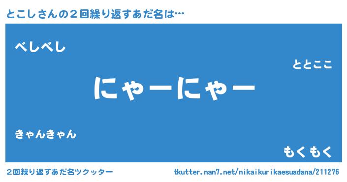 | 女子向けラノベタイトル風あだ名 | 『とこしの卵を拾いまして』『闇のとこし』 |