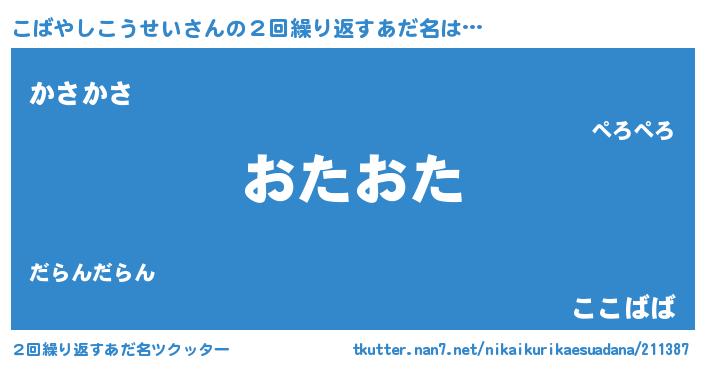 | 可愛いあだ名 | 『こっばぃー』『こばやしこうせいママ』 |
