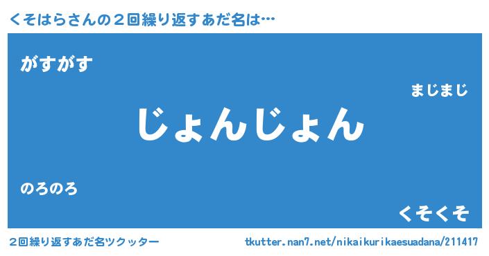 | 意味不明あだ名 | 『住所不定無職くそはら(74歳)』 |
