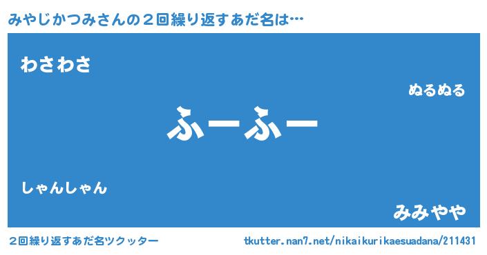 | ピコ太郎風あだ名 | 『ミミ太郎』『ピミ十郎』『ミヤ八郎』 |