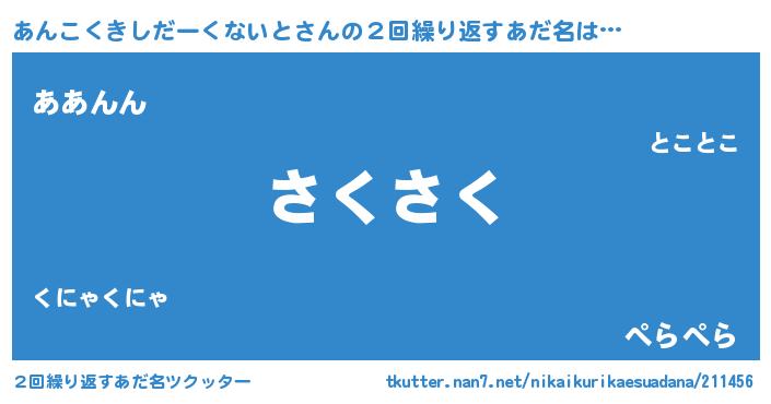 | 欧米人風あだ名 | 『アンジェラ・あんこくきしだーくないと』 |