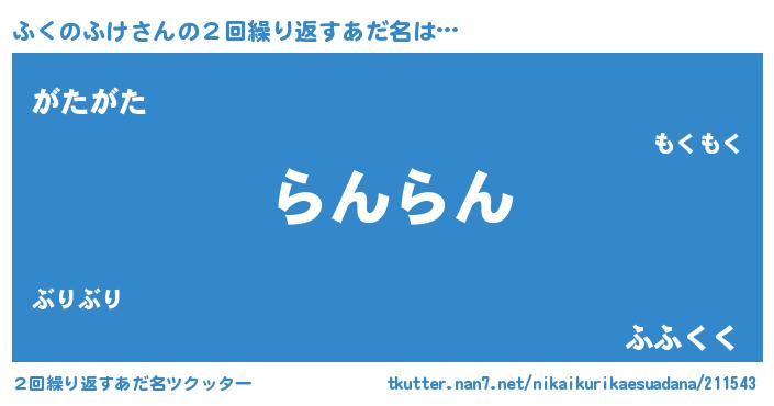 | 料理風あだ名 | 『ふくのふけごはん』 |
