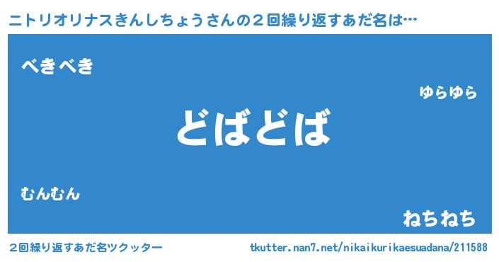 | 男性向けラノベタイトル風あだ名 | 『うちのニトリオリナスきんしちょうが世界を掌握している!』 |