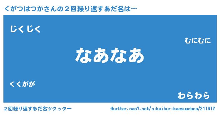 | 意味不明あだ名 | 『とにかく怪しいくがつはつか』 |