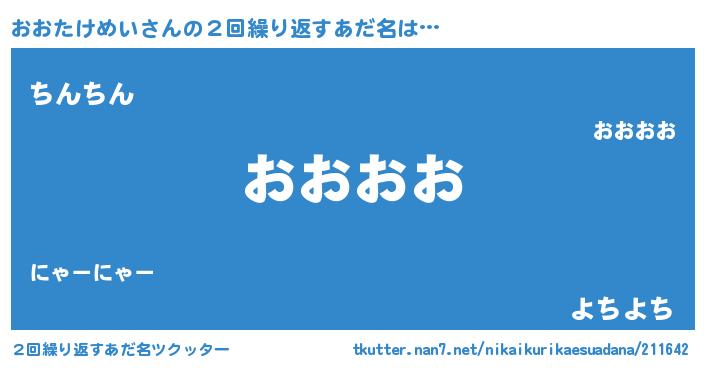 | 欧米人風あだ名 | 『おおたけめいクリステル』 |