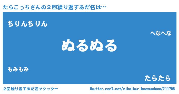 | 男性向けラノベタイトル風あだ名 | 『たらこっちに滅ぼされるだけの簡単なお仕事です』 |