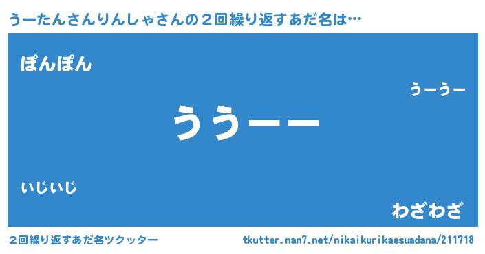 | 意味不明あだ名 | 『うーたんさんりんしゃフォーエバー』 |