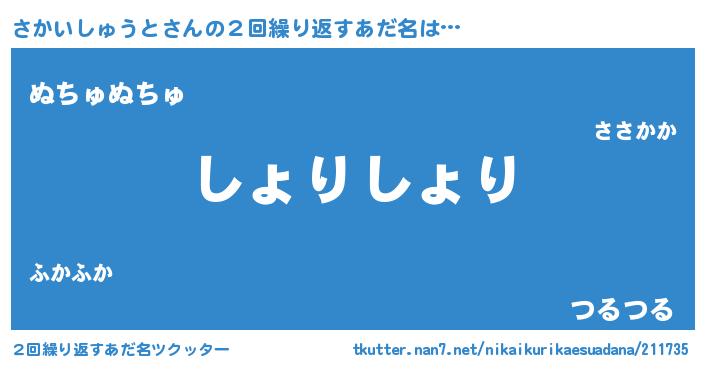 | 意味不明あだ名 | 『住所不定無職さかいしゅうと(3歳)』 |