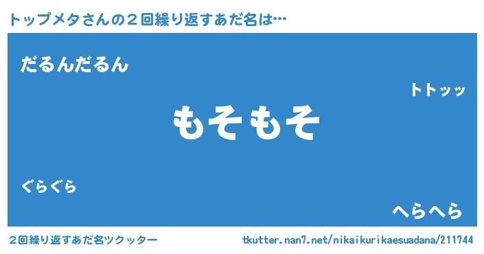 | 意味不明あだ名 | 『自称トップメタ』『永久保存トップメタ』 |