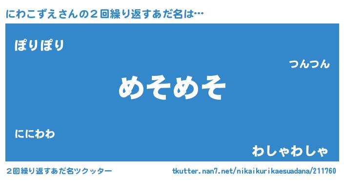 | 意味不明あだ名 | 『自称にわこずえ』 |