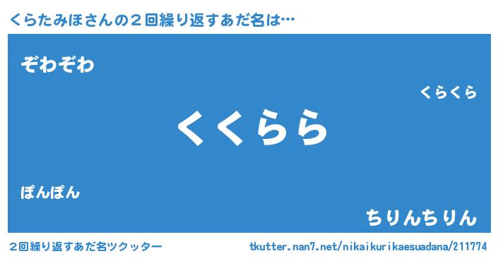 | 意味不明あだ名 | 『くらたみほフォーエバー』 |