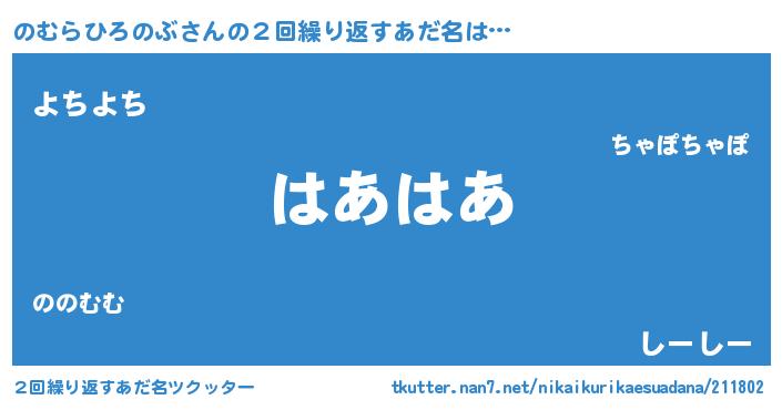 | 男性向けラノベタイトル風あだ名 | 『おまえをオタクにしてやるから、俺をのむらひろのぶにしてくれ! 』 |