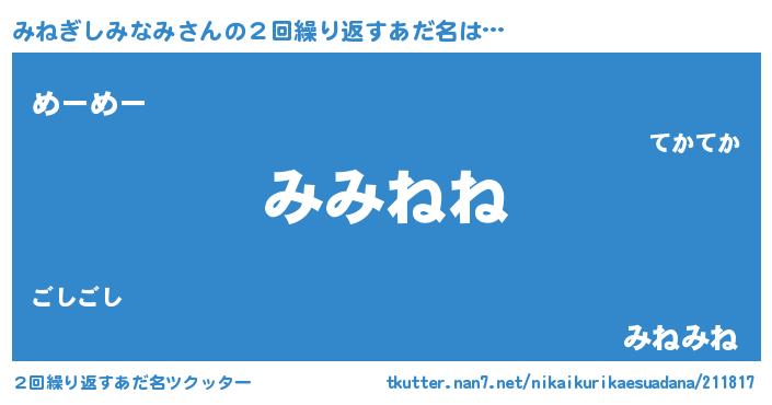 | 意味不明あだ名 | 『みねぎしみなみフォーエバー』 |