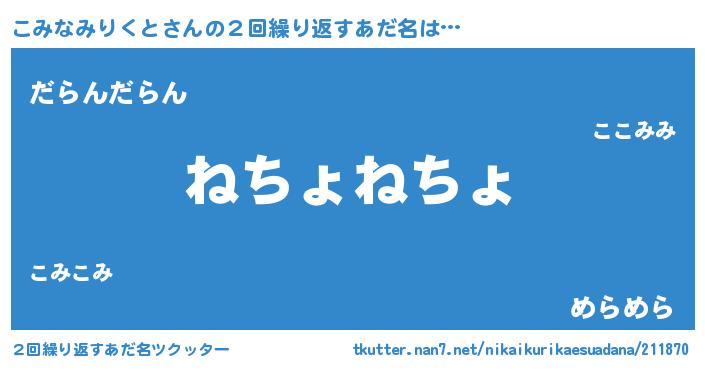| 欧米人風あだ名 | 『ウサインこみなみりくと』 |