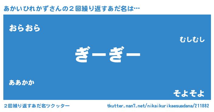 | ヘコむあだ名 | 『あかいひれかず(震え声)』『あかっちょ』 |