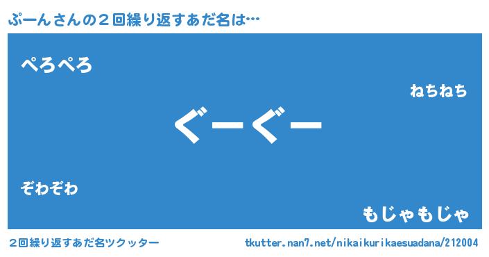 | 意味不明あだ名 | 『永久保存ぷーん』『自称ぷーん』 |