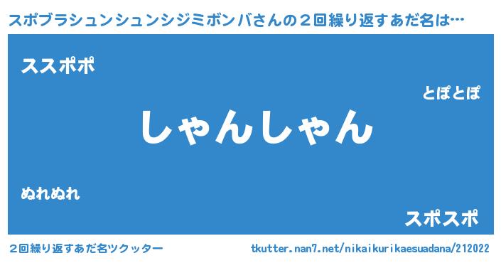 | 意味不明あだ名 | 『住所不定無職スポブラシュンシュンシジミボンバ(5歳)』 |