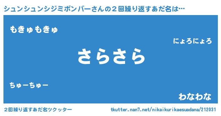 | 意味不明あだ名 | 『住所不定無職シュンシュンシジミボンバー(85歳)』 |