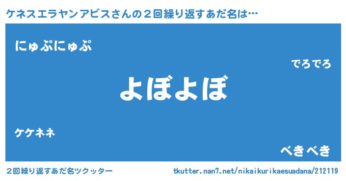 | 欧米人風あだ名 | 『トリンドルケネスエラヤンアビス』 |