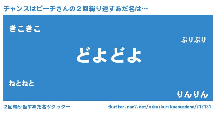 | 男性向けラノベタイトル風あだ名 | 『チャンスはピーチに滅ぼされるだけの簡単なお仕事です』 |