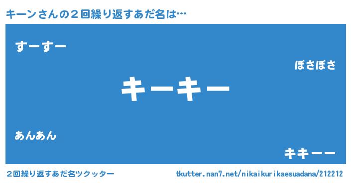| 意味不明あだ名 | 『ペロリンキーン』『キーンフォーエバー』 |