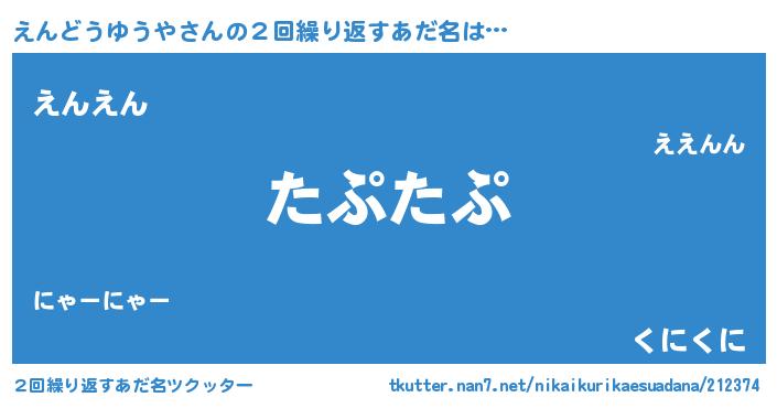 | ヘコむあだ名 | 『えんにゅー』『えんどうゆうや(遠い目)』 |