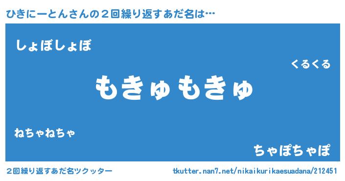 | 料理風あだ名 | 『ヘルシー!ひきにーとんのピリ辛酒蒸し!』 |