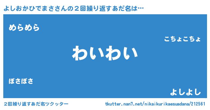 | ヘコむあだ名 | 『よしもー』『よしおかひでまさ(小並感)』 |