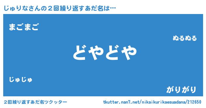 | 意味不明あだ名 | 『自称じゅりな』『永久保存じゅりな』 |