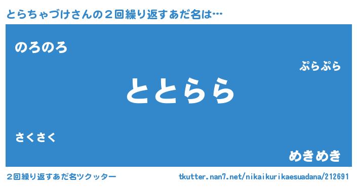 | 欧米人風あだ名 | 『とらちゃづけクリステル』 |