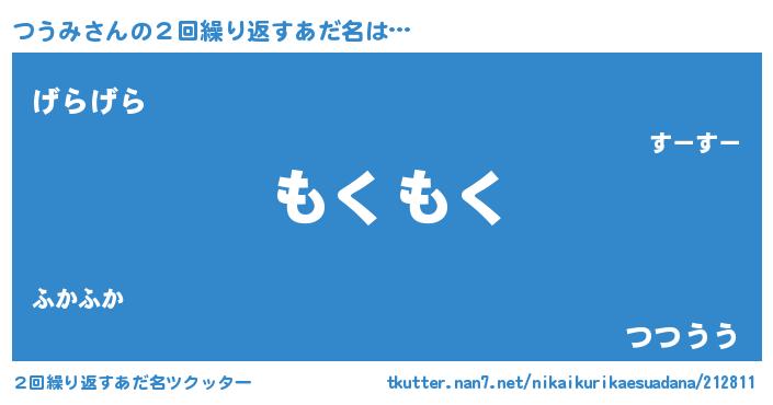 | 男性向けラノベタイトル風あだ名 | 『Re:つうみから始める異世界生活』 |