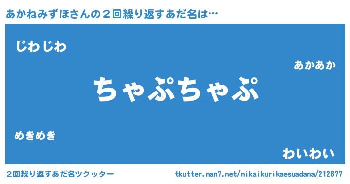 | 意味不明あだ名 | 『住所不定無職あかねみずほ(12歳)』 |