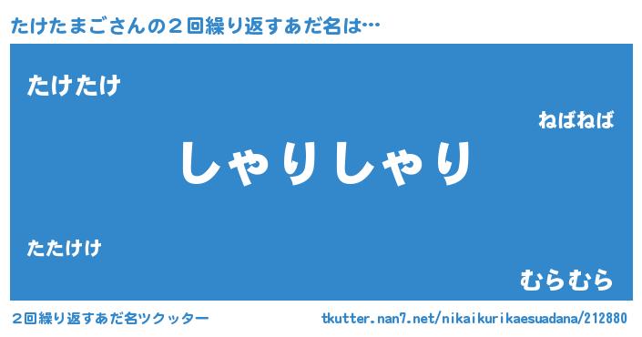 | 意味不明あだ名 | 『住所不定無職たけたまご(2歳)』 |
