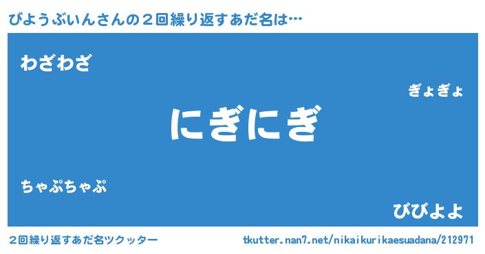 | 意味不明あだ名 | 『とにかく怪しいびようぶいん』 |